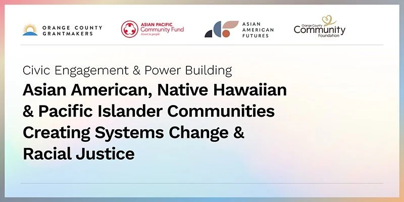 Join Orange County Grantmakers, Asian Pacific Community Fund, Asian American Futures, and Orange County Community Foundation for a conversation on civic engagement and power building within Asian American, Native Hawaiian, and Pacific Islander (AANHPI) communities in Orange County.