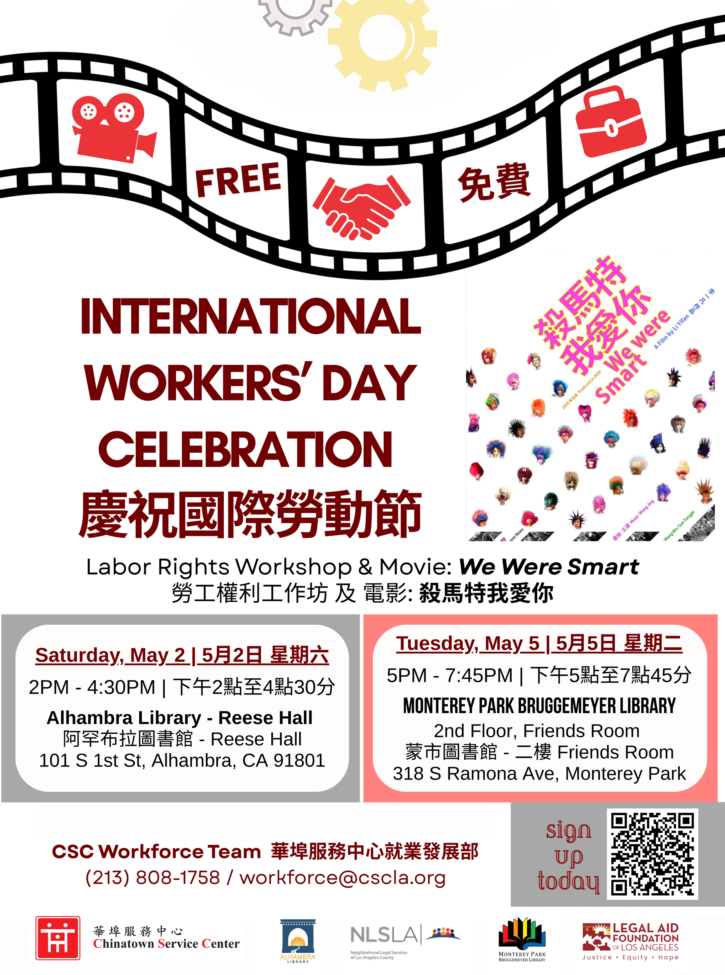 As May 1 is International Workers’ Day, join Chinatown Service Center on 5/2 and 5/5 for a Labor Rights Workshop and film screening. Families of all ages are welcome!