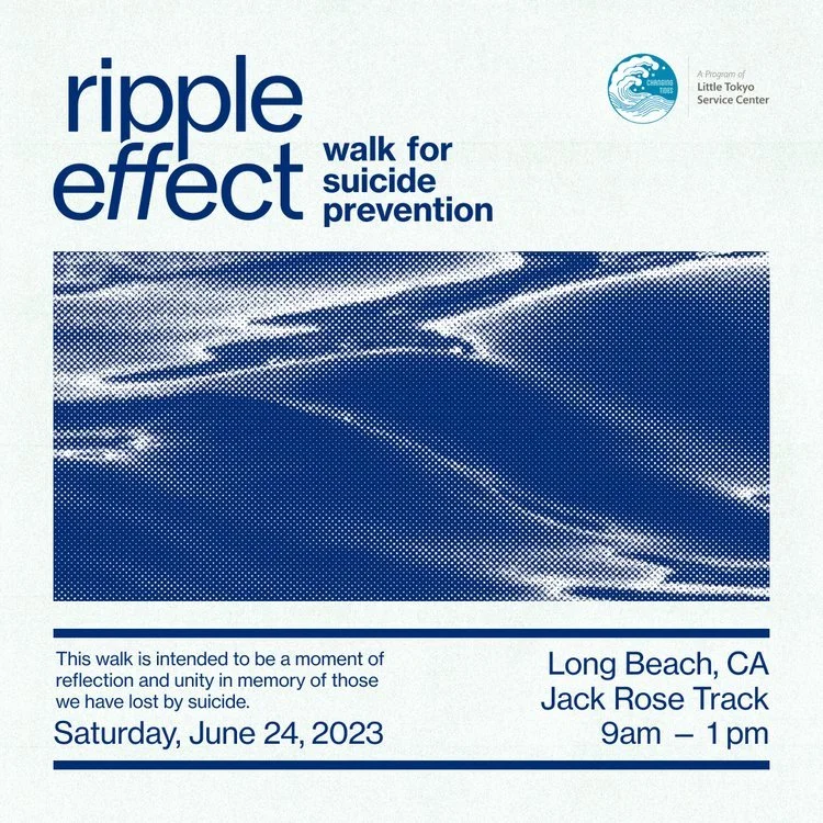 Changing Tides, a program of Little Tokyo Service Center (LTSC) is hosting the second annual Ripple Effect: Walk for Suicide Prevention. The Ripple Effect raises funds to support Changing Tides' initiatives in mental health awareness, services, and suicide prevention. With suicide now the third leading cause of death for youth between the ages 15-24 years old and the leading cause of death for AAPI youth in the same age range, Changing Tides hopes to bring critical resources to those in need. This walk is intended to be a moment of reflection and unity in memory of those we have lost by suicide. Attendees can walk at their pace with a group or individually. Ripple Effect brings people together to walk in solidarity for suicide prevention, suicide awareness, and for those who we have lost to suicide. Join Changing Tides’ Ripple Effect for a morning of guest speakers, vendors, mental health resources, and mindful movement!