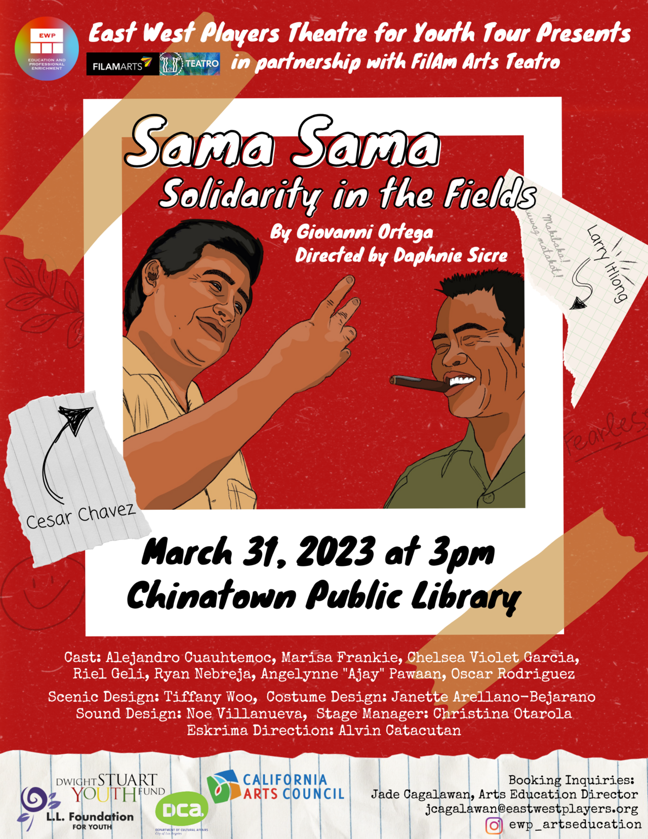 Sama Sama: Solidarity in the Fields is a story that infuses narration, poetry, music, movement, and Eskrima, the national martial art of the Philippines, told through the lens of Tonantzin, Araw and Uriel, three high school students who are finding themselves and their cultural identity by learning about the “Manongs” and “Bracero Program.” It emphasizes the shared narratives of Mexican and Filipino culture and uses English, Spanish, and Tagalog to amplify this important piece of history. The play is intended to be interactive/immersive and inspired by theatrical praxis similar to Teatro Campesino, Philippine Educational Theatre Association, and Theatre of the Oppressed.