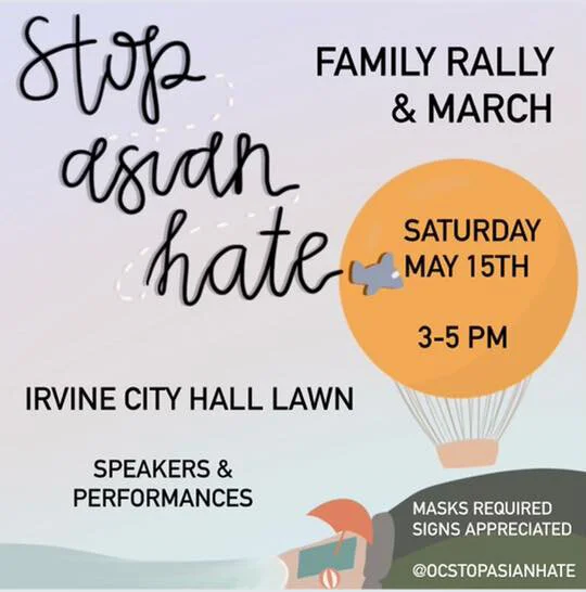 Join our Stop Asian Hate Family Rally & March on Saturday, May 15th at Irvine City Hall lawn.