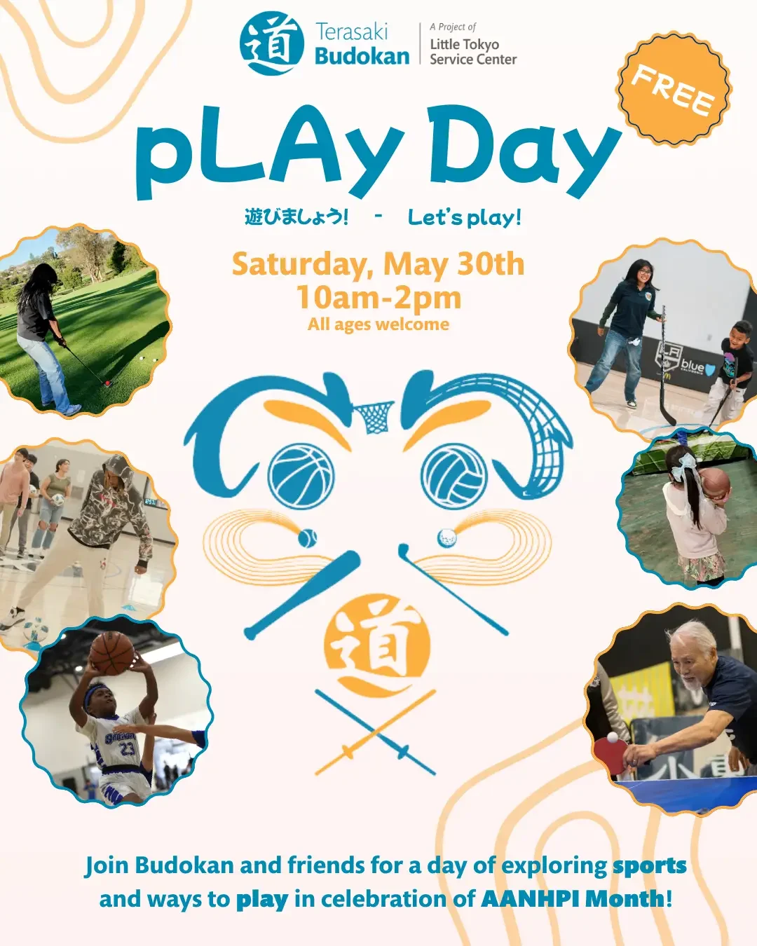 In celebration of AANHPI month, Terasaki Budokan is hosting this event to provide free, accessible, and inclusive play for all ages to explore sports, movement, and mental health. This will be a passport-style event, so attendees are encouraged to try all of the activities!