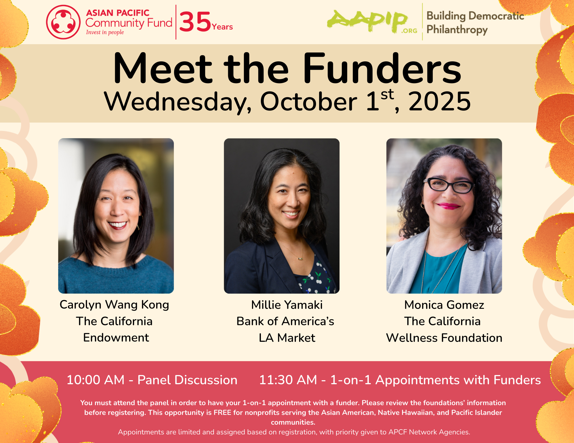 Since 2016, APCF has collaborated with AAPIP-LA (Asian Americans/Pacific Islanders in Philanthropy – Los Angeles) to provide “Meet the Funders” events to help connect AANHPI nonprofits with new funding sources. Offered twice a year, APCF facilitates a panel of several funders to discuss their organization’s funding priorities, eligibility criteria, do’s and don’ts of applying, and other insights that demystify the funding process. After the panel, there is also an invaluable opportunity for AANHPI nonprofits to have a one-on-one session with the funder. These sessions help facilitate relationship building between the two sectors, allowing for the nonprofit to ask very specific questions while the funder gets to know the nonprofit better.
