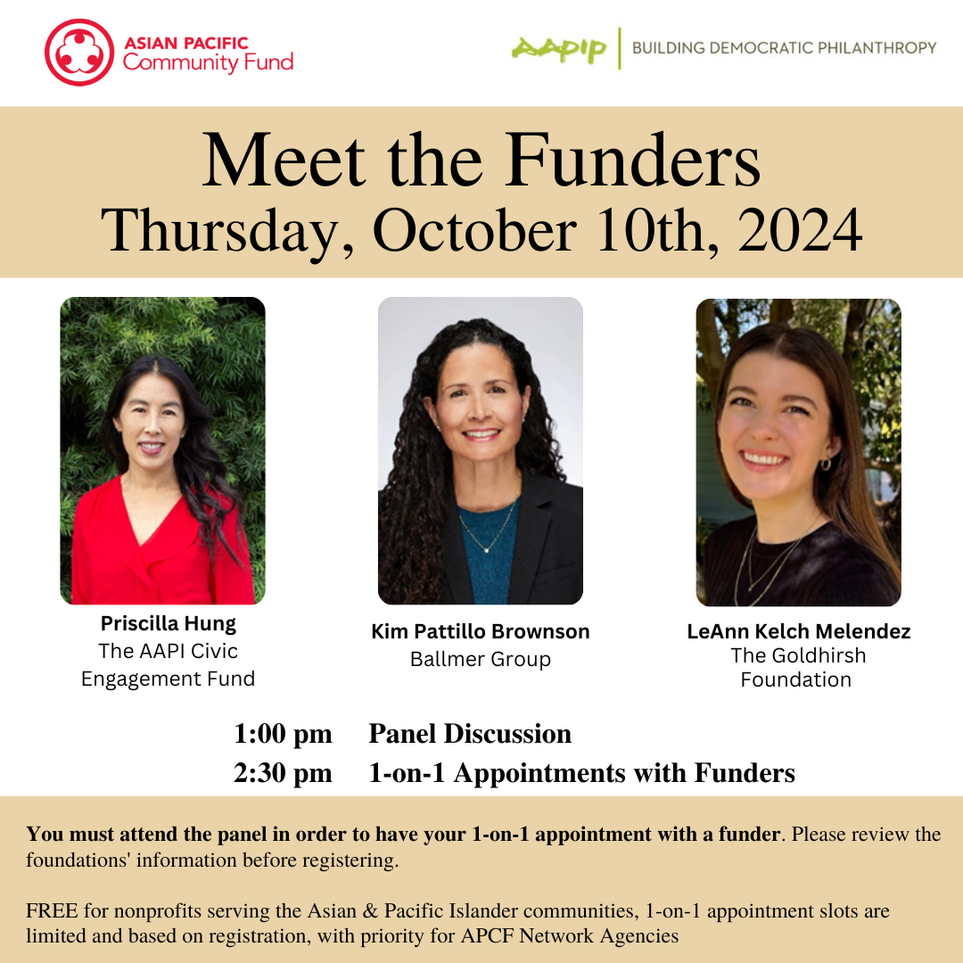 Thank you for registering to APCF’s Meet the Funders event on Thursday, October 10th at 1:00pm.